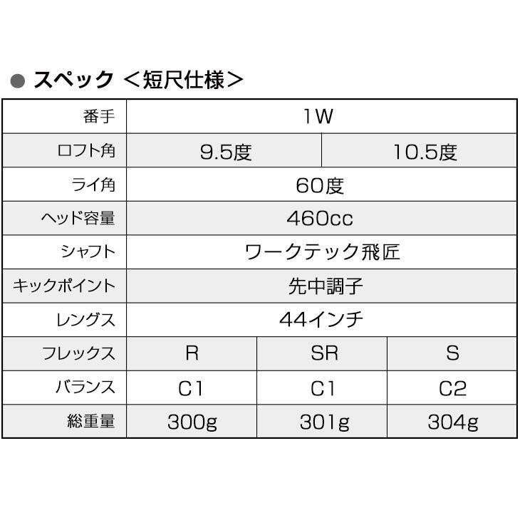 ゴルフ クラブ 新品 ドライバー ワークスゴルフ 44インチ 超高反発 CBR ブラックプレミア MAX1.7 ワークテック飛匠シャフト仕様 9.5度 10.5度 R SR S 短尺