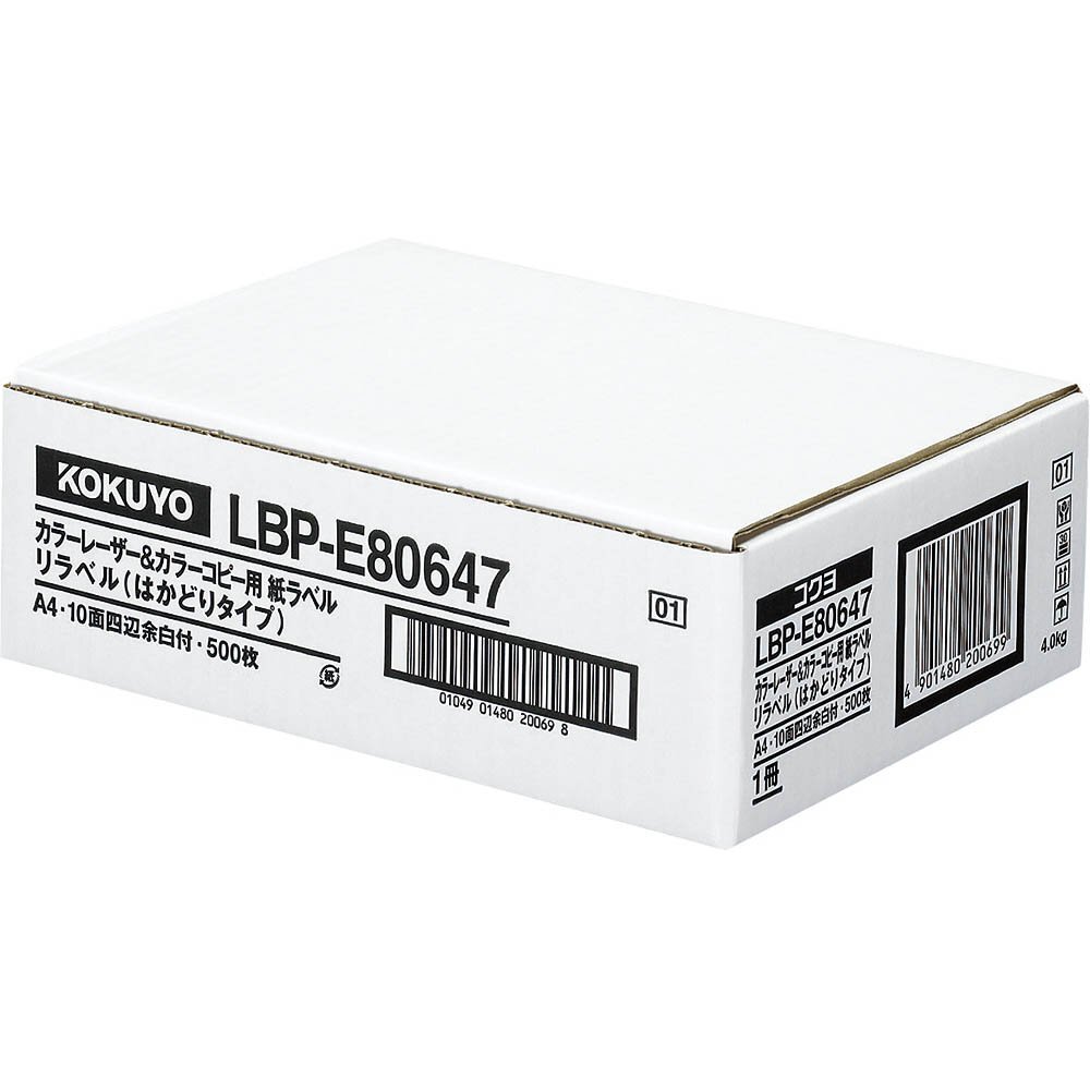【商品名:コクヨ カラーレーザー&カラーコピー用 紙ラベル リラベル はかどりタイプ A4 10面 四辺余白付 500枚 LBP-E80647】
