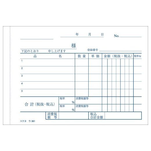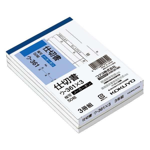 【商品名:コクヨ NC複写簿 ノーカーボン 仕切書 B7ヨコ 50組 3冊パック ウ-361X3 インボイス対応 軽減税率制度対応】