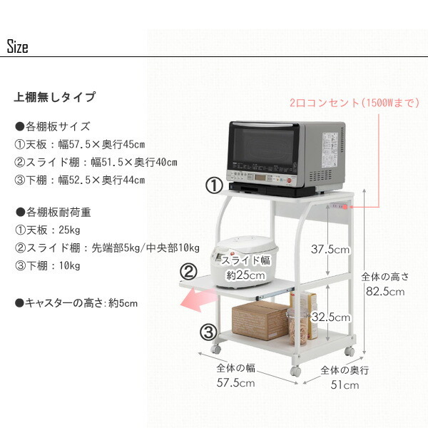 キャスター付き、コンセント付き(1500Wまで) |