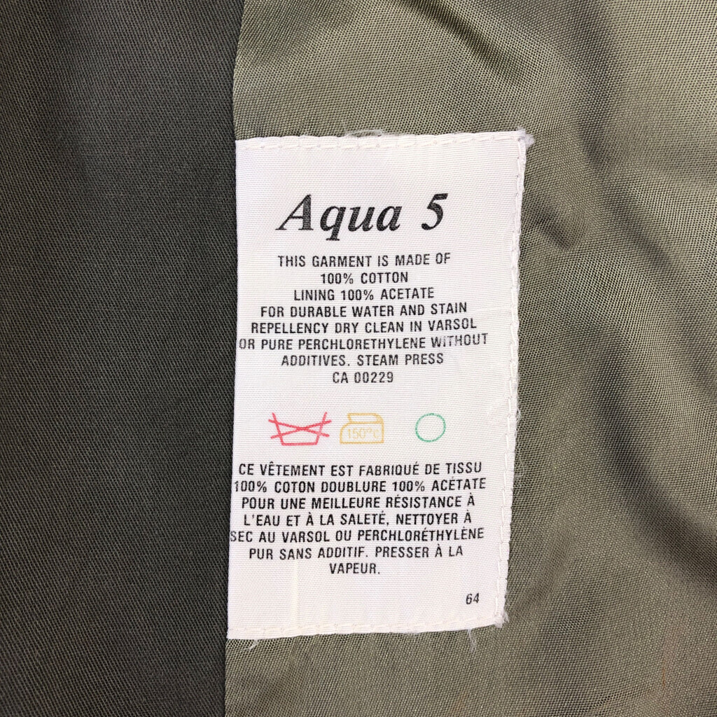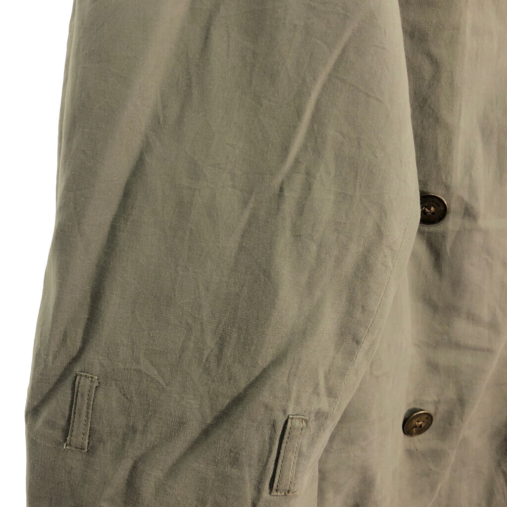 | [商品管理番号] R2692 [ブランド] Aquascutum/アクアスキュータム [サイズ] XL相当 [実寸サイズ] 肩幅:約63cm 着丈:約133cm 身幅:約71cm 袖丈:約61cm [主な素材] 表地 : コットン 裏地 : 54870 [色] カーキ [仕様] 生産国 : カナダ製 80年代 トレンチコート [状態] 汚れ:裾、腹部裏地 | |||