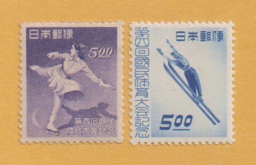 ○【記念切手】第4回国体 (冬季)《5oo円》 スケート・スキー (2種)1949年 未使用