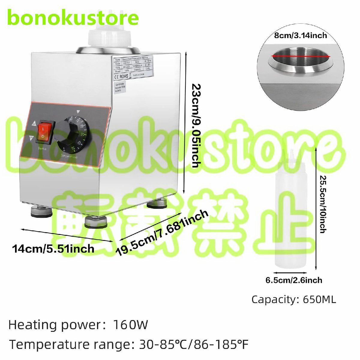 【実用仕様】当社の電気ソースウォーマーには、6.5*6.5*25.5cmのソースボトルが付属しており、容量は650MLです。 160W から 640W までのさまざまな電源オプションが用意されています。各購入には、ソースウォーマー、ケーブル、英語の説明書、ソースボトル1~4本などの必須アイテムが含まれています。