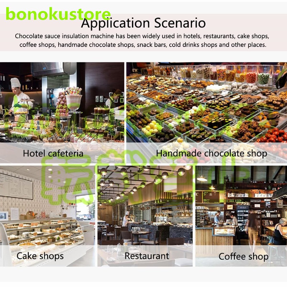 【幅広い用途】フードソースウォーマーは、サラダドレッシング、ケチャップ、マスタードソースなどのさまざまなソースを加熱または温度を維持するために使用でき、特に保温が必要な一部の特別なソースやチョコレートバターチーズに適しています。ファストフードレストラン、食堂、スナックステーション、その他の商業食品業界で広く使用されています。