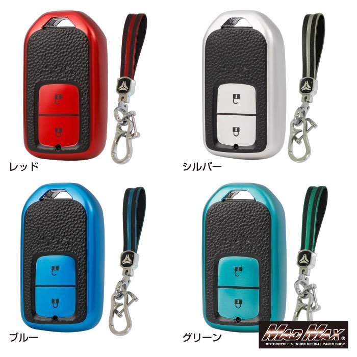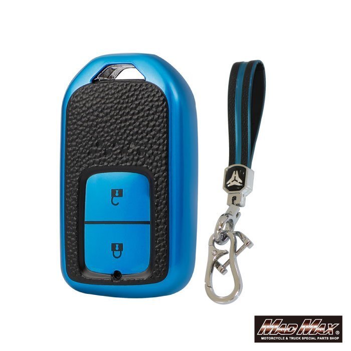 ホンダ専用 レザー調 TYPE A 2ボタン式 TPUソフト スマートキーケース ブルー