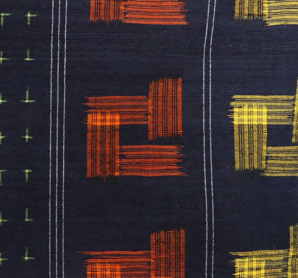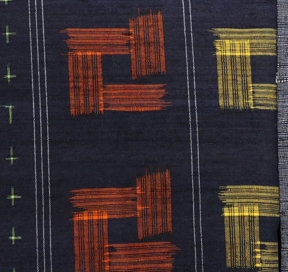 単衣 手織り紬 濃紺・グレー・赤・黄色地 絣柄織 (写真では上手く色が出ない場合があります。ご了承下さい) |