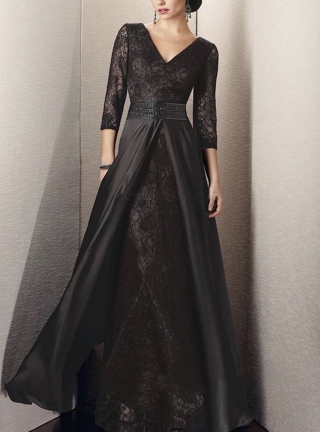 大きいサイズも小さいサイズもOKプロムドレス Vネック 7分袖マザードレス サイズオーダー無料 結婚式 出席パーティードレス ピアノ 発表会