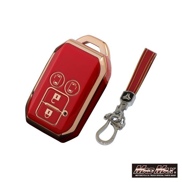 スズキ専用 ゴールデンライン TYPE B TPUスマートキーケース レッド。