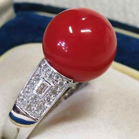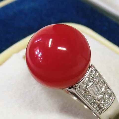 血赤サンゴ11,7ミリ☆プラチナ製リング