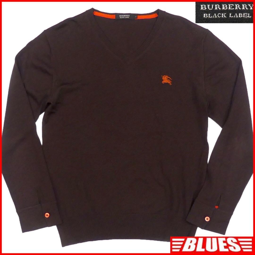 即決★BURBERRY BLACK LABEL★メンズ M 廃版 ニット セーター バーバリーブラックレーベル 2 茶 オレンジ ナイト刺繍