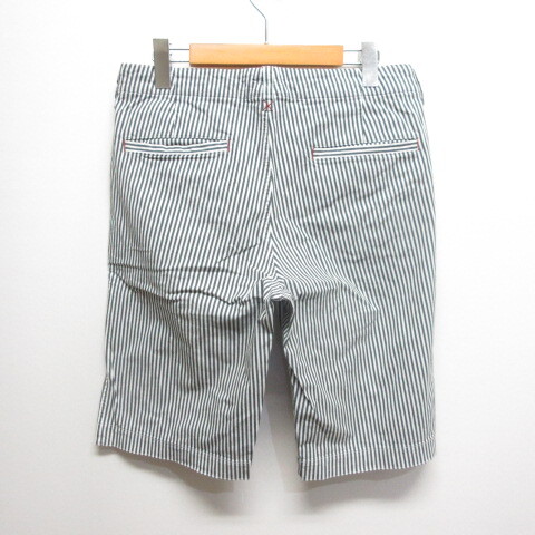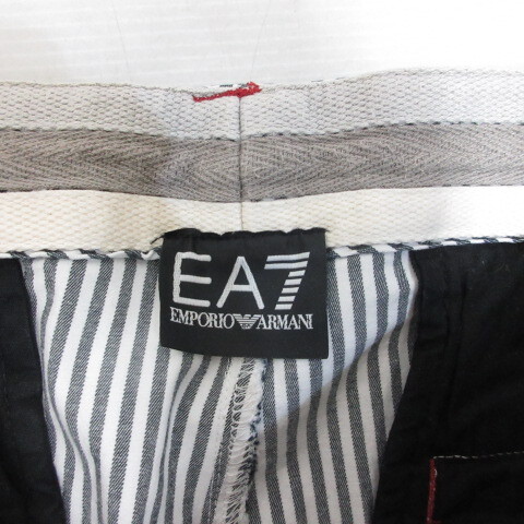 エンポリオアルマーニ EMPORIO ARMANI EA7 ストライプ柄 ショート ハーフ パンツ XS 白×グレー ストレッチ コットン ジッパーフライ 正規