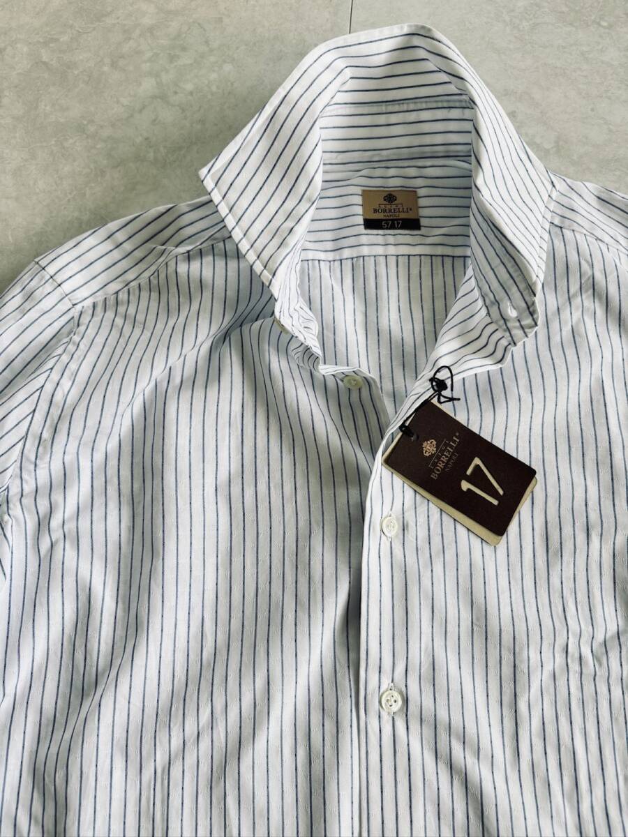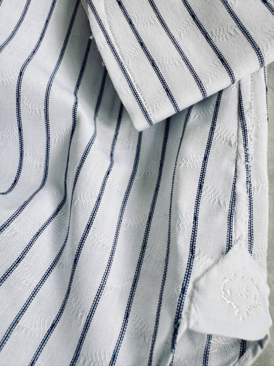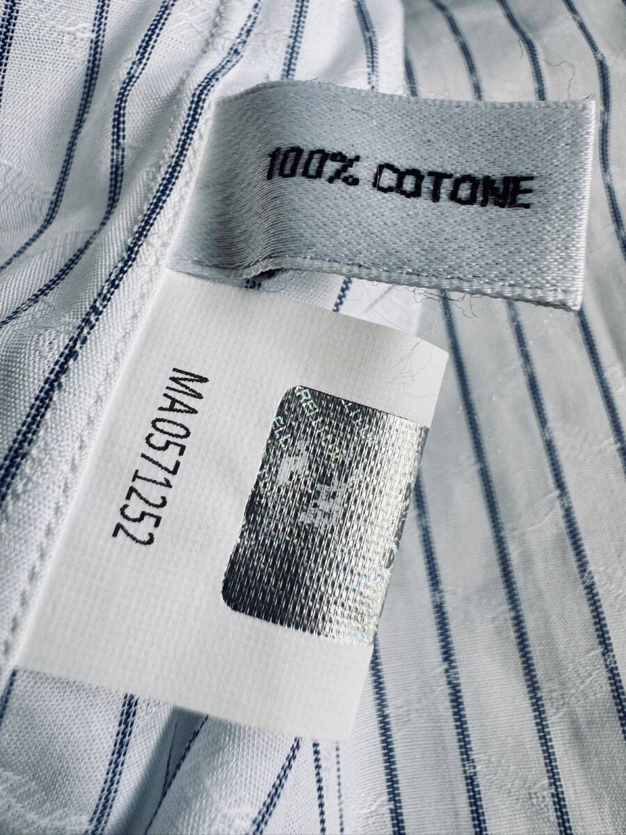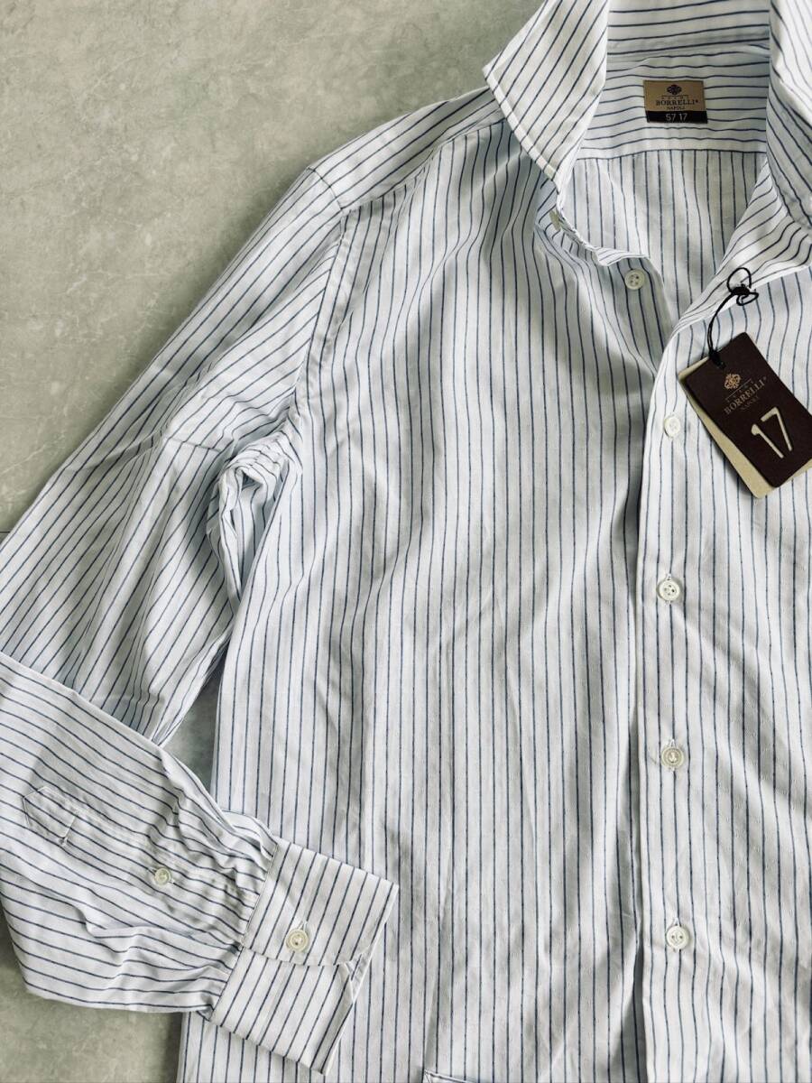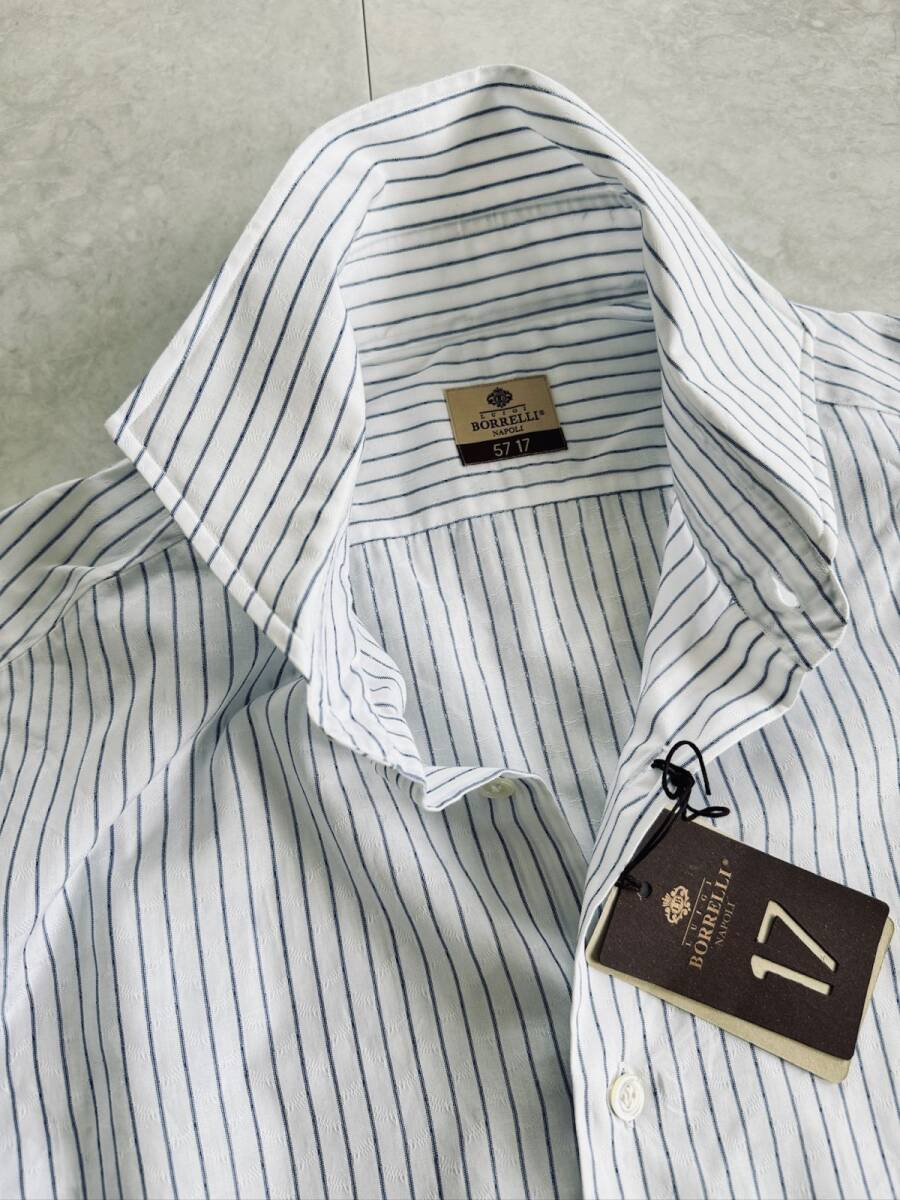 シャープさと色気が同居するホリゾンタルカラー「FELICE」 ご紹介するのは、新たにコレクションに加わった「FELICE(フェリーチェ)」です。 フェリーチェは、ドレスシャツ用の衿型として開発されたホリゾンタルカラーになります。 従来ボレッリのホリゾンタルカラーは、ドレス・カジュアル共通のNA35が主流でしたが、 ドレスシャツにしては衿腰が若干低いという理由からフェリーチェが開発されました。 衿羽根が水平に近い角度で開くホリゾンタルカラーのお手本とも言える衿型なのですが、 やわらかめの衿芯(フラシ芯)が使用されているため衿羽根に自然なふくらみが生まれます。 上から見ると衿羽根は直線ですが、正面から見ると衿羽根が美しいカーブを描いていることが 分かると思います。 このカーブが、ナポリシャツらしい独特な色気を生み出す要因になっています。 衿腰が高くなったぶん衿羽根に角度がつき、シャープさが増していることもポイントです。 ノーネクタイでボタンを外してもお洒落に決まるのでジャケパンスタイルにも使えます。 品名 :LUIGI BORRELLI / ルイジボレッリ 素材:綿100% 表記サイズ :41 着丈:78cm 袖丈:66cm 肩幅:45cm 身幅:58cm ※実寸値となりますが誤差はご了承ください。 ※迅速なお取引を心がけさせていただいております。オークション終了より24時間以内にご連絡をいただけない場合、土日祝日を除き48時間以内にお支払い手続きをいただけない場合は、お取引の意思なしと判断させていただき取引キャンセルとさせていただきます。 万が一上記が不可の場合は事前にご連絡いただくか、入札をお控えいただきますようお願い申し上げます。 ※なるべく現物に近いお色味で撮影するよう心掛けておりますが、閲覧環境の違い等によって違いが出る場合があります。 差し替えトラブルを避ける意味でも上述した旨含め、イメージと違う等での返品は受け付けておりません。 百貨店並みのサービスを求める方や神経質な方の入札はお控えいただきますようお願い申し上げます。 また、差替えやSNS使用後の返品等を防止するためためにも、原則返品には応じられません。 疑問点や心配事等がある場合は入札前に質問欄にてお問い合わせください。 ※当方が出品するすべての商品は間違いなく本物ブランド品となりますので、安心してオークションにご参加ください。 万が一、第三者等により偽物と判断された場合、商品の返品、お支払いただきました全額を返金をいたします。 |