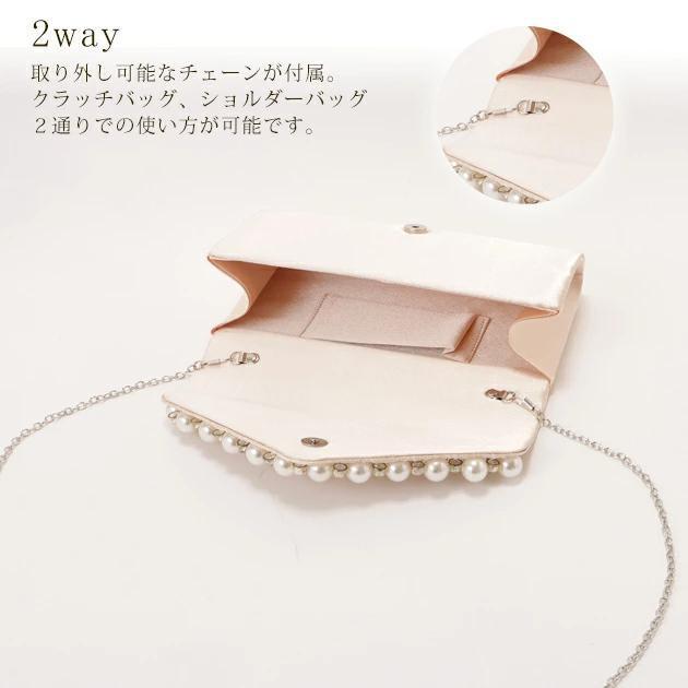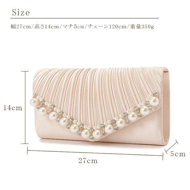 2way パーティーバッグ クラッチバッグ ショルダーバッグ レディース サテン プリーツ パール ビジュー 春 夏 秋 冬 フォーマル きれいめ フェミニン 結婚式 お呼ばれ 二次会 謝恩会 披露宴 演奏会 発表会