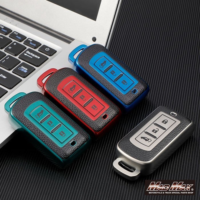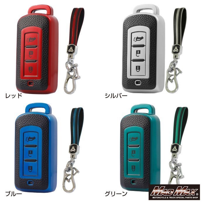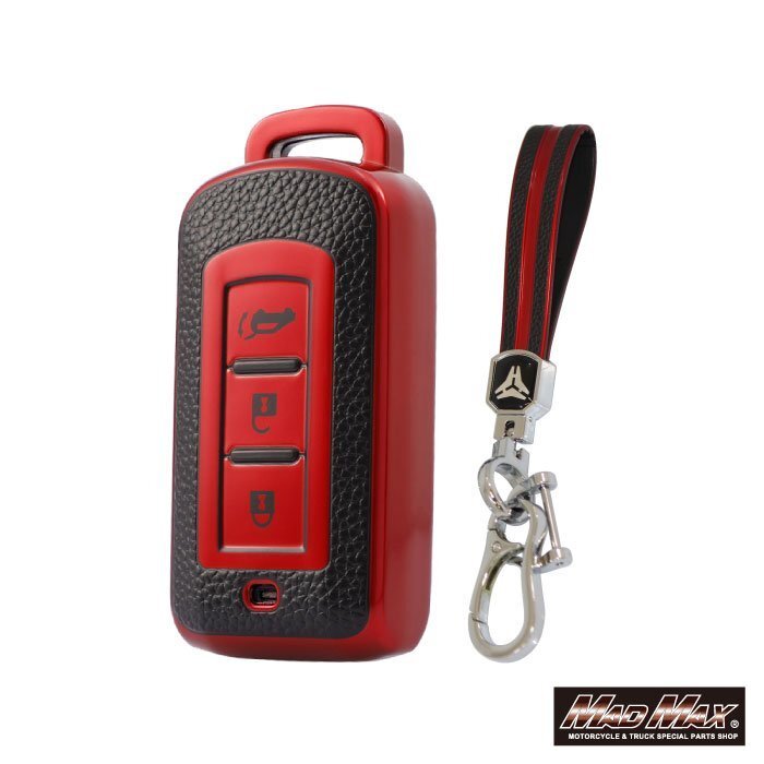 ミツビシ専用 レザー調 TYPE A 3ボタン式 TPUソフト スマートキーケース レッド