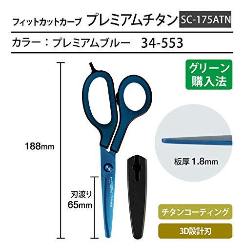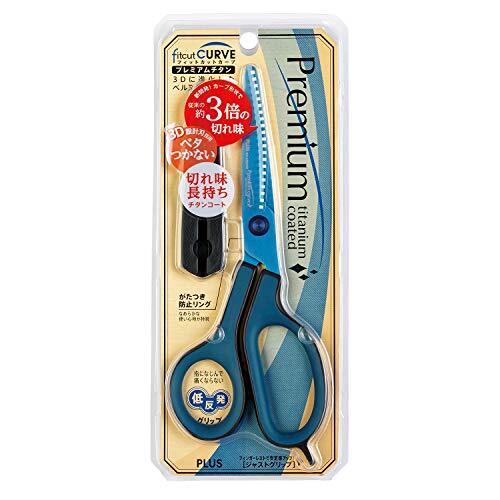 「プラス はさみ フィットカットカーブ プレミアムチタン 左右非対称 プレミアムブルー 34-553」▼4977564584122▼(商品説明)1本・プレミアムブルー 34-553・・Style:1本・2012年発売以降、出荷ベースで累計 950万本以上発売・左右非対称の「ジャストフィット」タイプ どれだけ切ってもサクサク長持ち、べたつかない3D設計刃・長さ:188mm 刃渡り:65mm 板厚:1.8mm カラー:プレミアムブルー・刃仕様:3D設計刃、チタンコーティング ベルヌーイカーブ刃・材質:グリップ=44%再生樹脂(85%再生ABS+TPE)、キャップ=PP、刃・カシメピン=ハイカーボンステンレス鋼、がたつき防止リング=POM説明 根元から刃先まで切断に最適な刃の開き角度(約30°)を常に保つベルヌーイカーブ刃により、従来品比約3倍の切れ味の軽さを実現した家庭用はさみ。 ★特長★ ■新開発! 3D設計刃 刃に施した立体的な曲面加工により、2枚の刃の接する面積を極限まで減少。従来品比約100倍以上という究極の非粘着性を実現しました。 ■高硬度チタンコーティング 刃にチタニウムをコーティングすることで、50万回以上(PPC用紙を切断した場合)持続する切れ味を備え、さびや汚れにも強くなっています。長さ