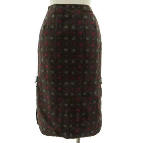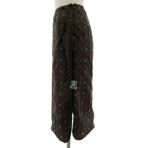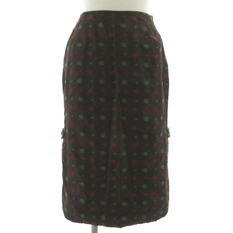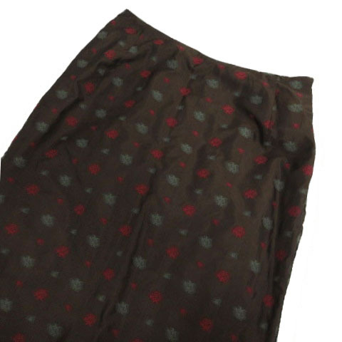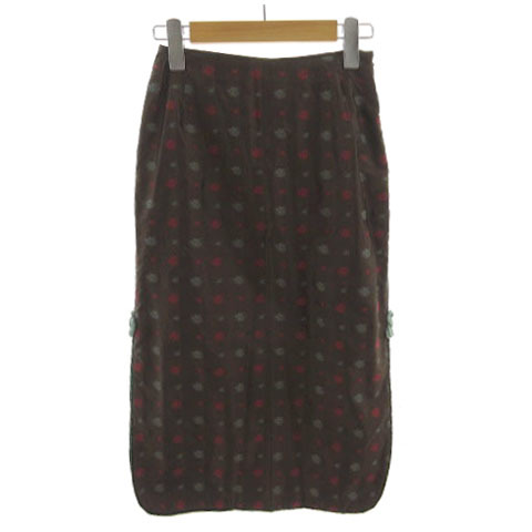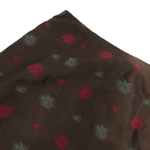 スリッツ ユナイテッドアローズ SLITZ UNITED ARROWS スカート タイト チャイナ風 ミモレ丈 日本製 シャイニー 光沢 総柄 茶 赤 緑系 36