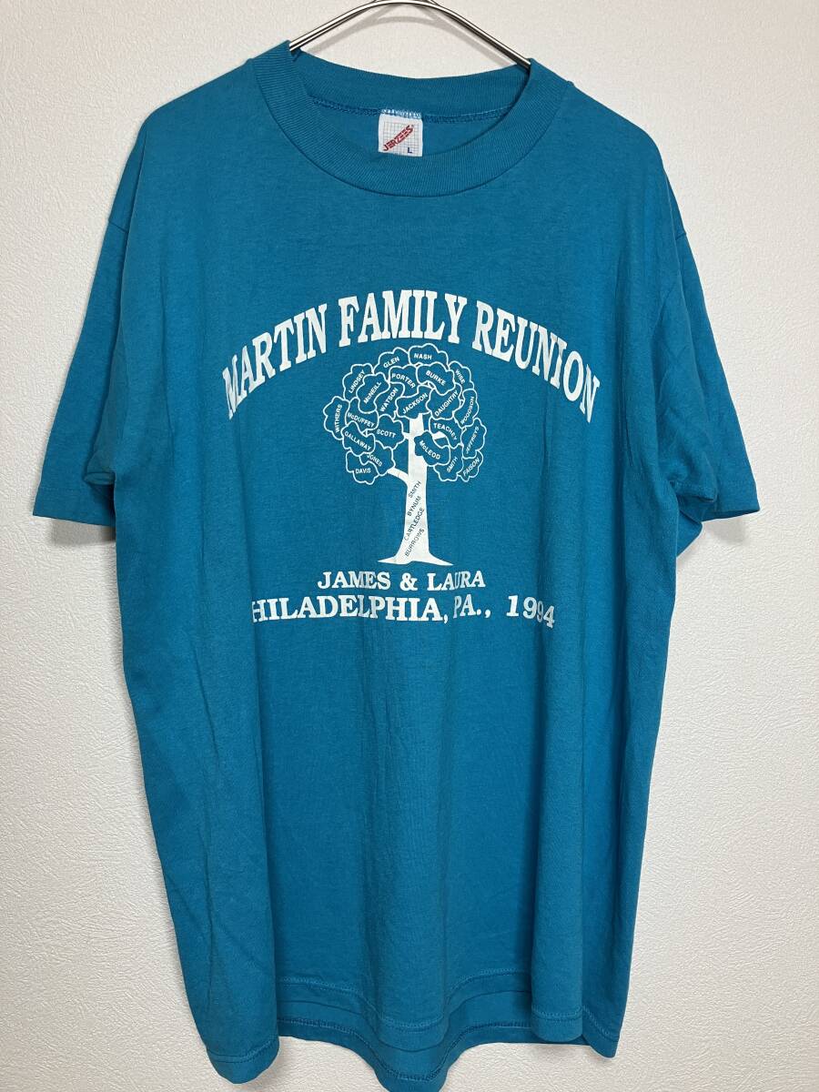 MARTIN FAMILY REUNION JERZEES ジャージーズ シングルステッチ Tシャツ 青緑 L【管理番号B67】