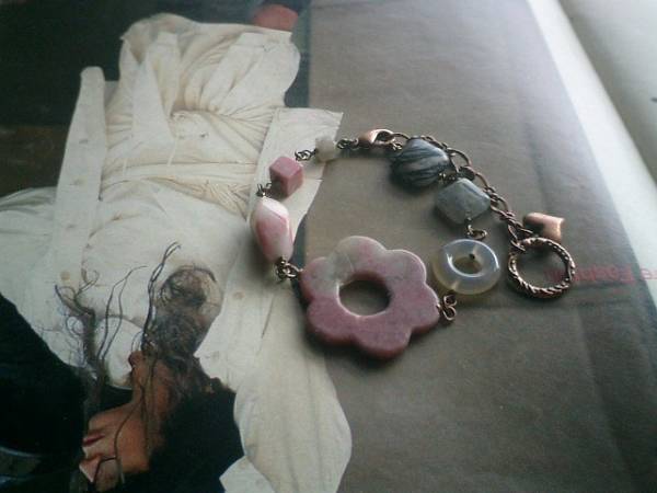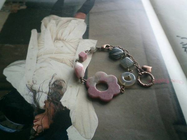 エキセントリック少女・・シリーズです♪薔薇のモチーフ・・シックな薔薇色のロードナイトのブレスレットです♪デザイン違いのロードナイトにゼブラジャスパーやグレーカルセドニー、ラブラドライトを合わせて個性的な表情です♪ロードナイトは6ミリ、8ミリのスクエア、17ミリ×8ミリ位のツイストナツメ、27ミリ位のフラワーリングです♪ゼブラジャスパーは12ミリのスクエア、グレーカルセドニーは15ミリのリング、ラブラドライトは10ミリのスクエアです♪長さは全長23センチ位です♪♪お揃いのネックレスも出品しています♪シンプルで合わせやすいデザインを考えて作りました♪ハンドメイドをご理解いただいてノーリターン、ノークレームでお願いします♪