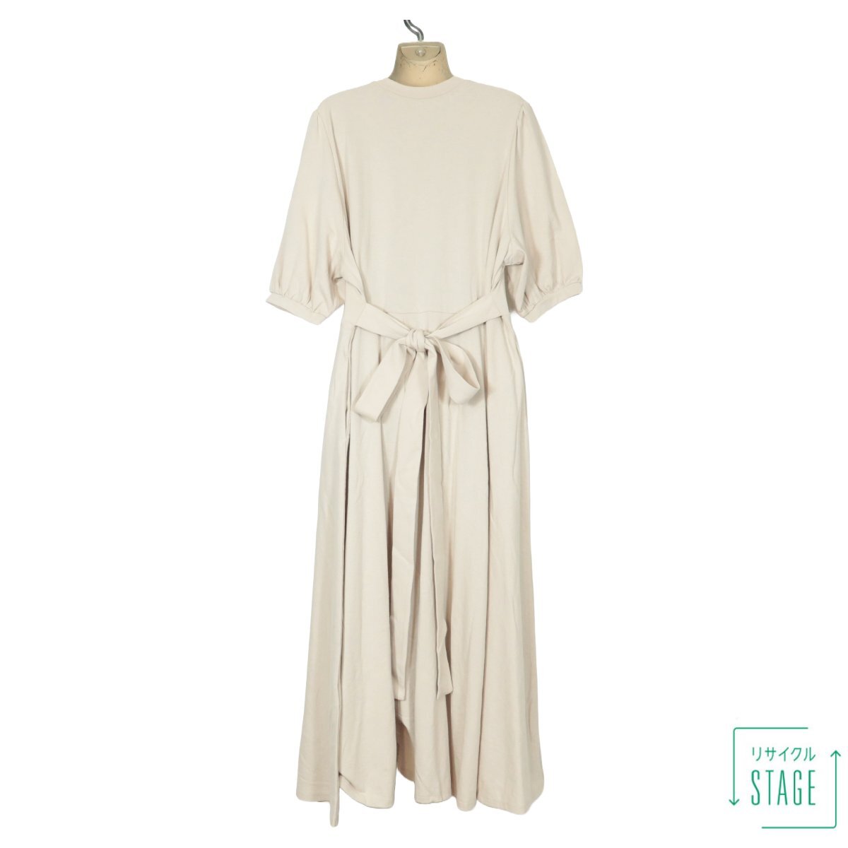 KBF ZOZO(株)★ゆったりパフスリーブが可愛い♪ ウエストリボンありワンピース! サイズ縦M横2XL ベージュ系 z8630