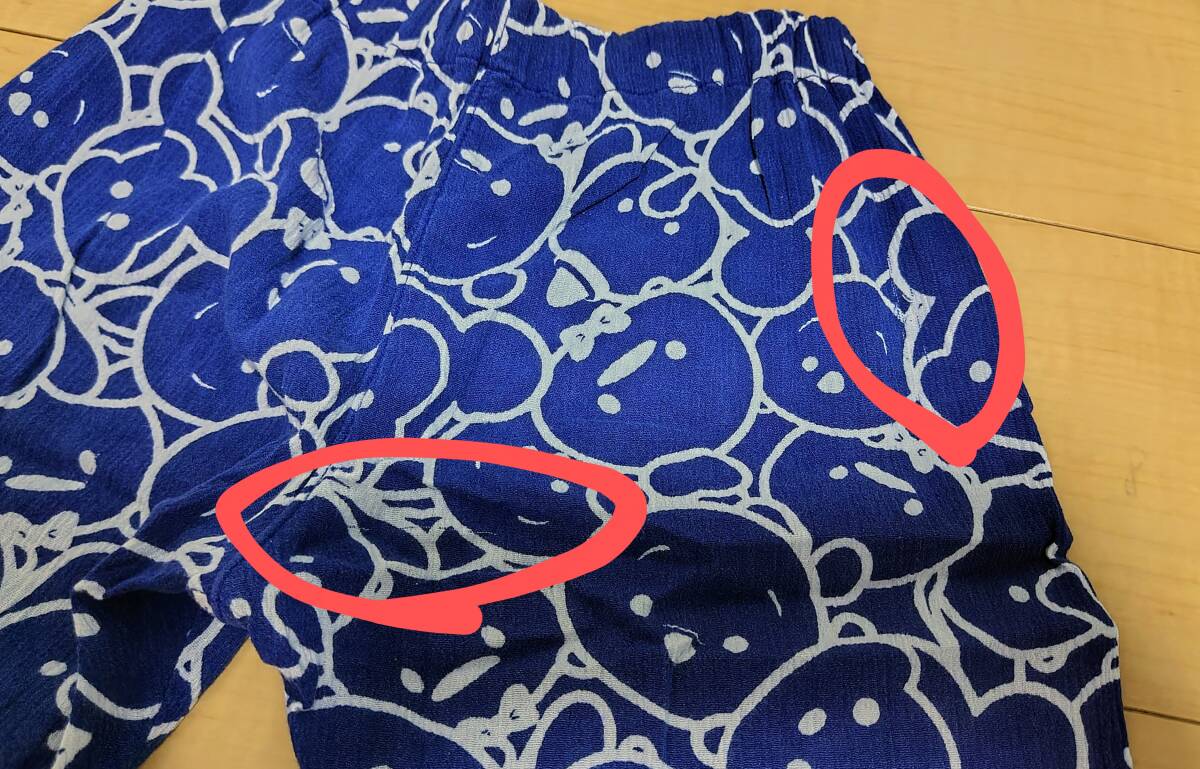 分かりにくいですが、写真3枚目の赤〇おしりの部分に擦れあり。