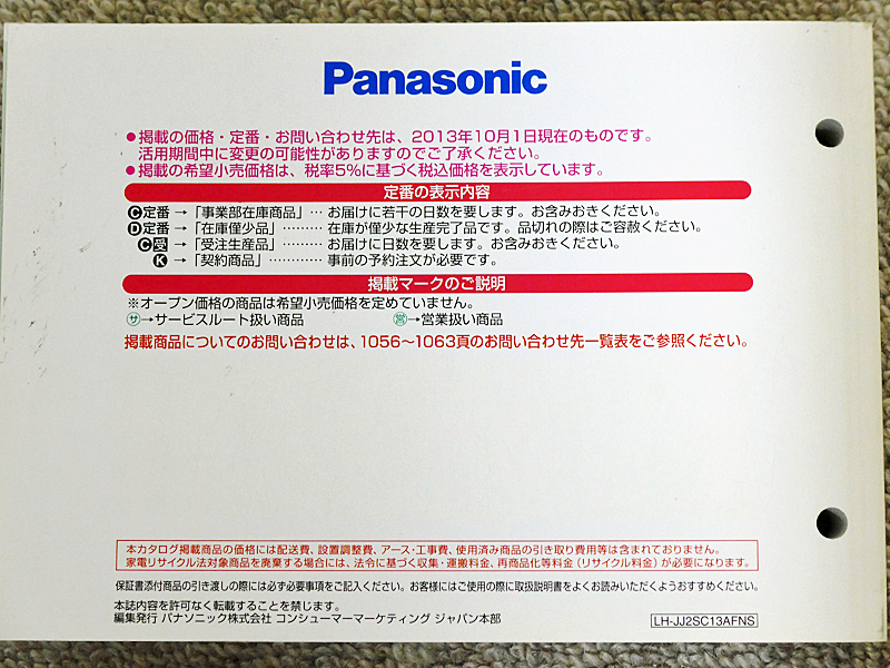 Panasonic パナソニック セールスマン専用カタログ 2013年 秋冬