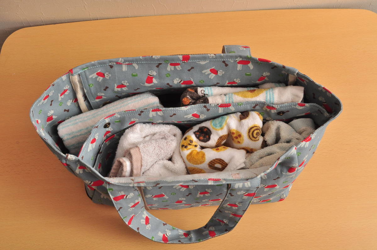 今回は、見た目はシンプル、使うと便利、仕切りバッグを作ってみました。