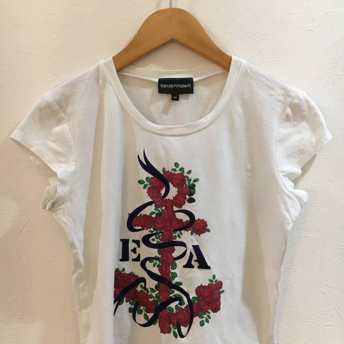 ◆商品 EMPORIO ARMANI/エンポリオ アルマーニ 40サイズ Tシャツ 半袖 白 前面 薔薇 派手
