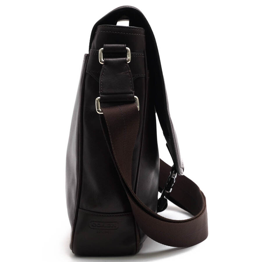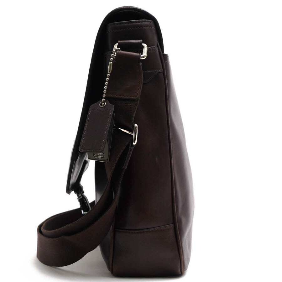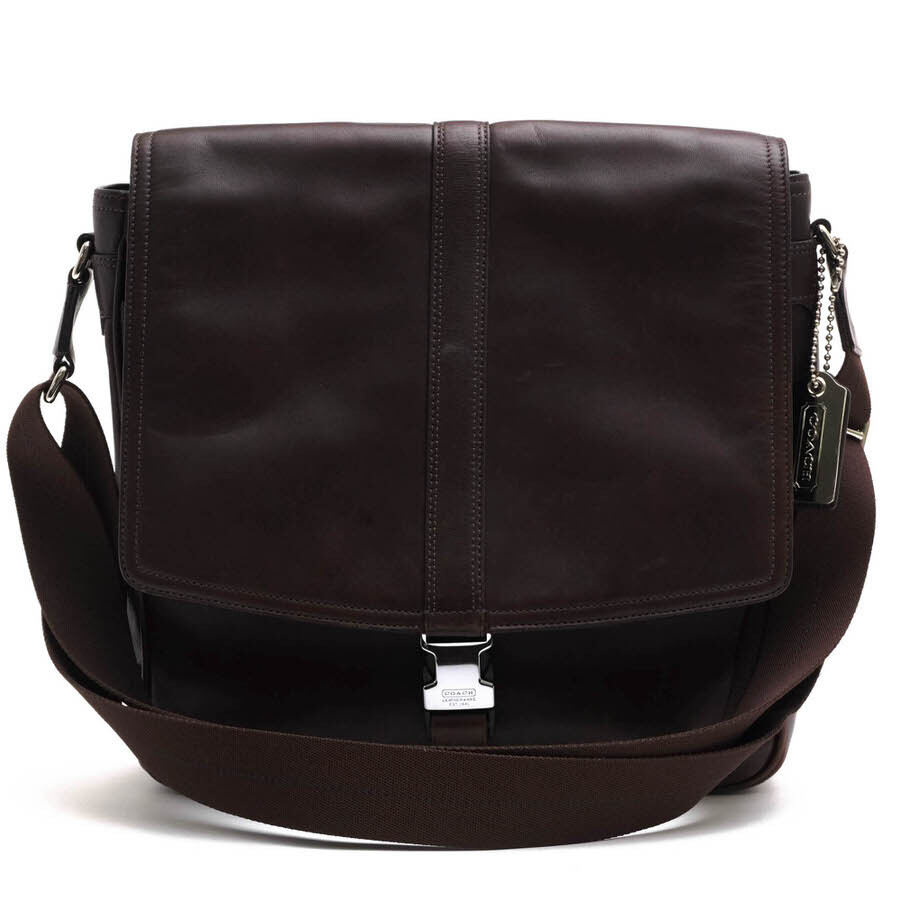 コーチのメッセンジャーバッグ。上質なレザーの高級感があるバッグです。フラップ式で、中の荷物が見えず、多彩なポケットで、抜群の収納力を誇るバッグです。シンプルなデザインで合わせやすく、コーディネイトの幅も広がりますね。 |