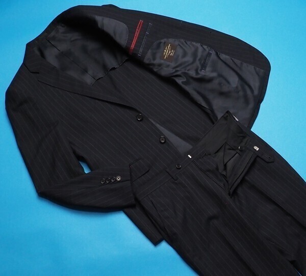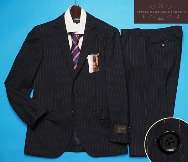新品9.1万円 大手百貨店扱い 春夏『CANONICO カノニコ イタリア製生地』Super120Sウール100% ストライプ スーツA5紺(20) 10238020