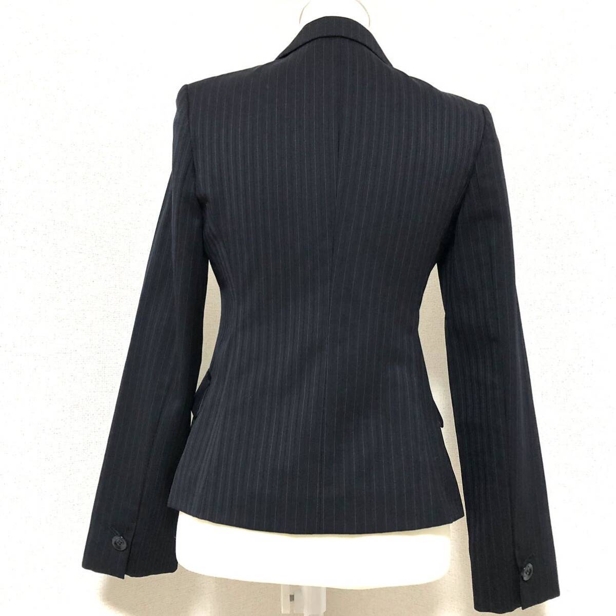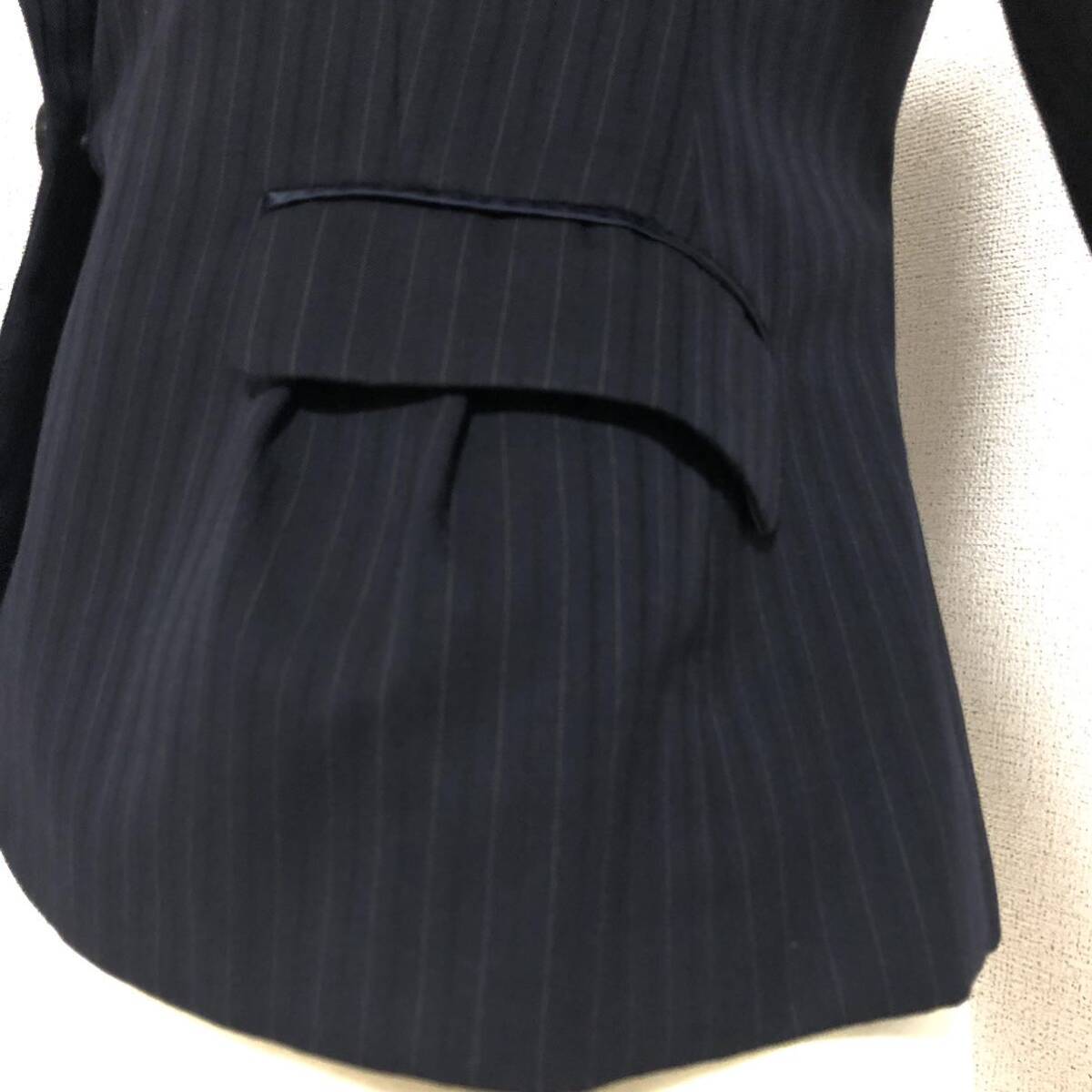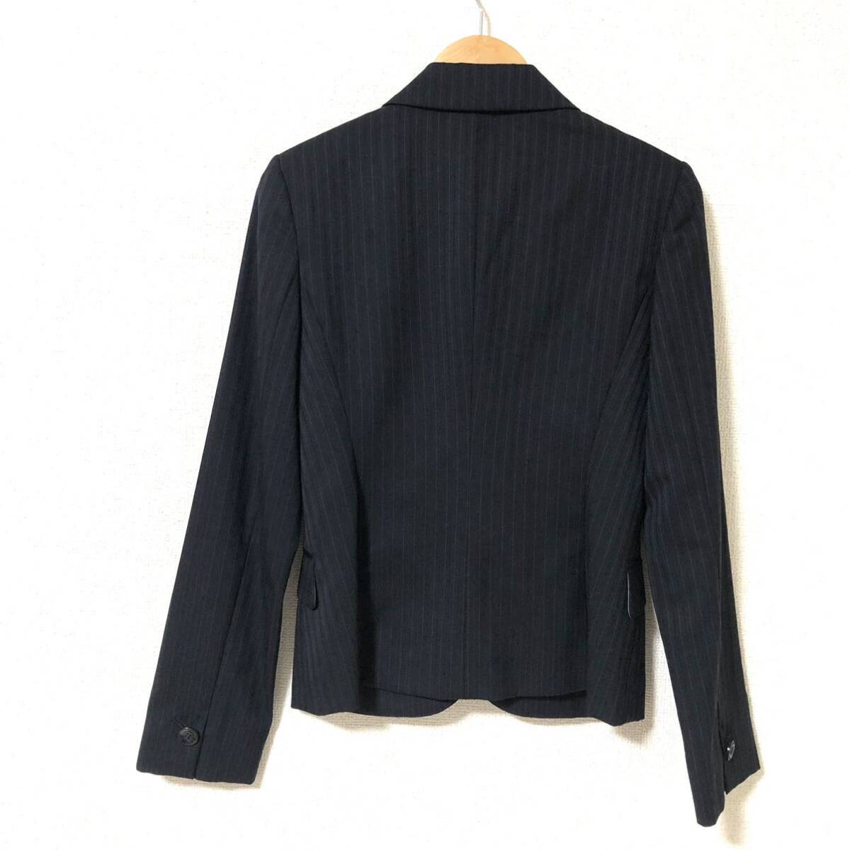ストライプ柄のシングルボタンのテーラードジャケットです。ポケットに可愛いくタックが入っています。