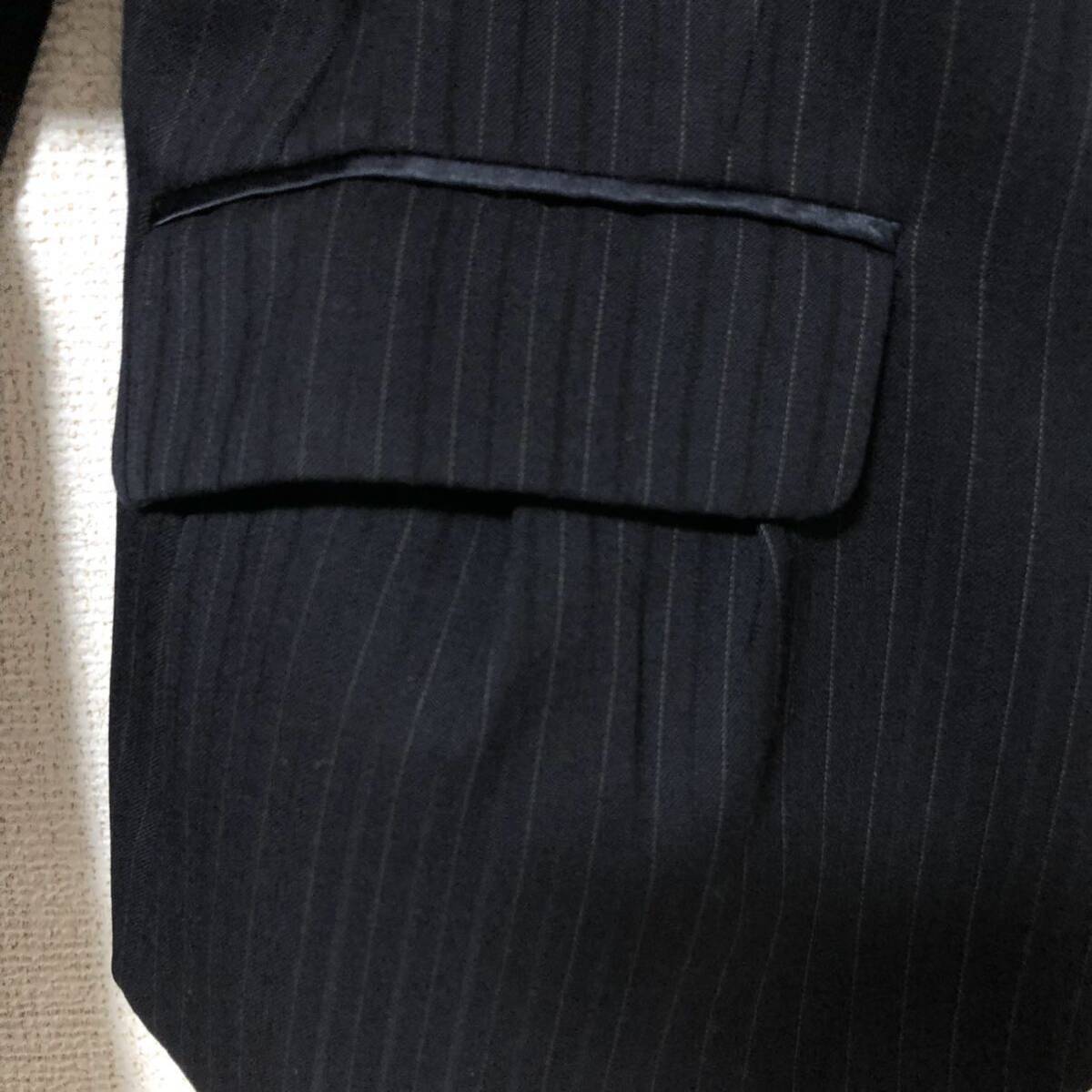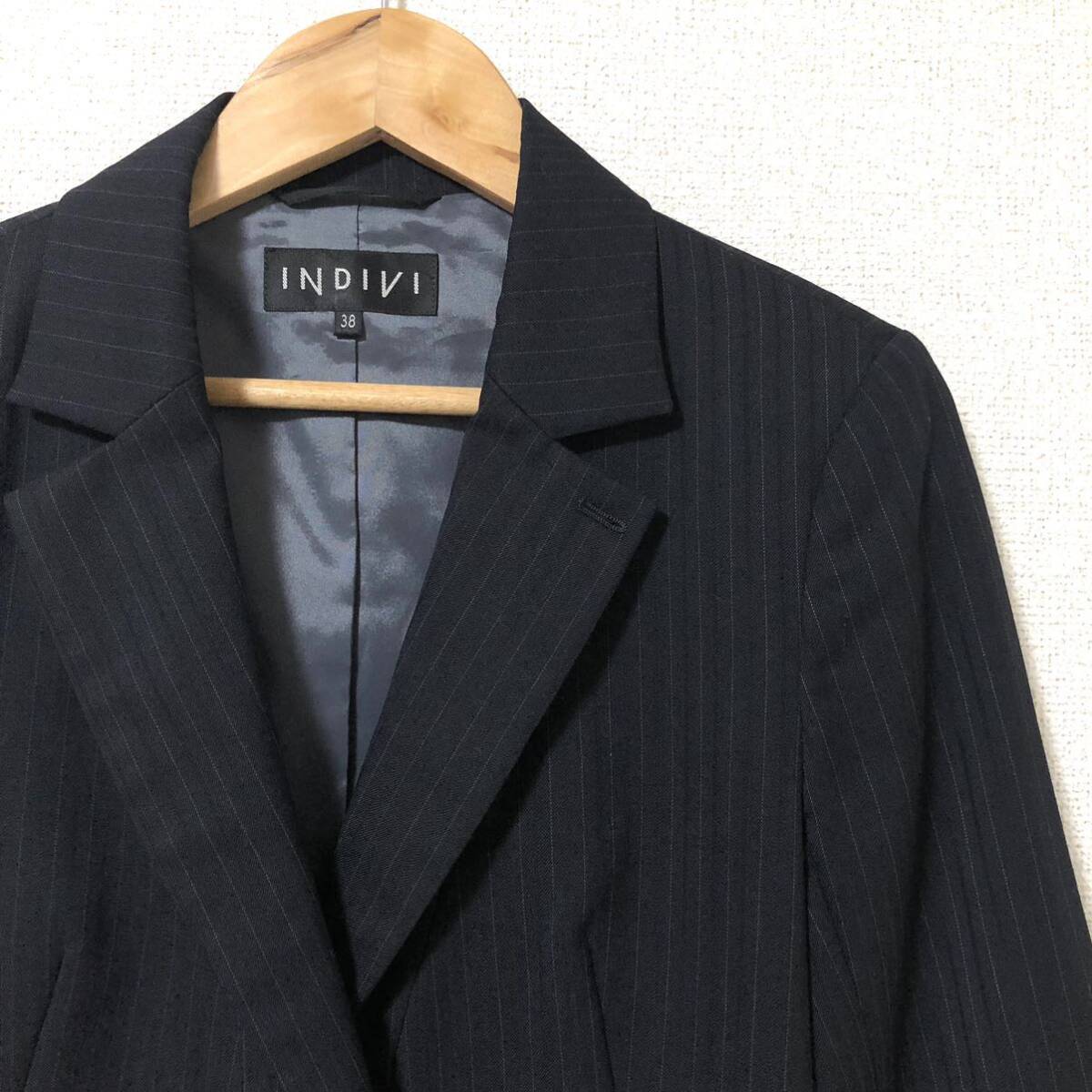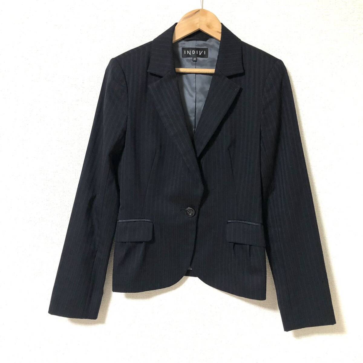 ストライプ柄のシングルボタンのテーラードジャケットです。ポケットに可愛いくタックが入っています。