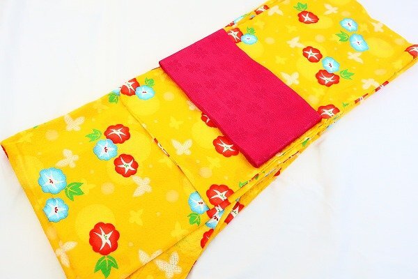 〔浴衣の色〕 黄色 〔浴衣の素材〕 綿 100% 〔帯の色〕 赤ピンク 〔帯の素材〕 ポリエステル 100% |