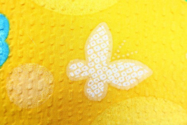 浴衣と帯の2点セットです。 【浴衣】 黄色の木綿地に、紫陽花が描かれた大人浴衣です。 【帯】 赤ピンク地に桜の柄が織られた半幅帯です。 |