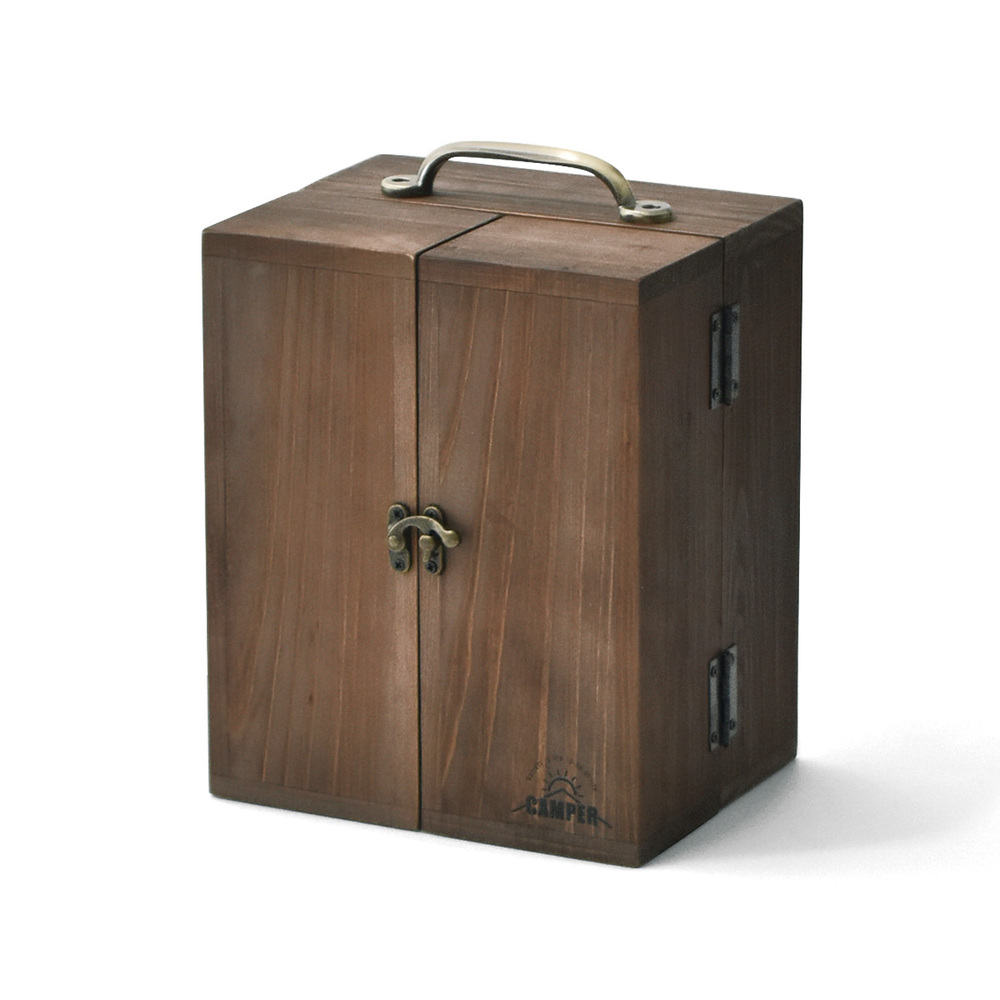 | 商品説明 | ・・お気に入りのスパイスをおしゃれに収納・持ち運びできる!CAMPER スパイスキャビネットが発売。 ・留め具を外して左右に開くキャビネットタイプ。スイング型の留め具で、開閉がラクラク。 ・全開に広げれば自宅のキッチンでスパイスキャビネットとして使えて、キャンプなどのアウトドア時にはそのまま持ち出せる♪ ・3つのスペースに分かれており、両サイドには少し高さのあるスパイスボトルや、ミニ醤油ボトルなどが収納可能。 ・真ん中上段にはスパイスの小瓶をディスプレイ。下段は引き出し式なので、ミニパックの調味料や小物を収納できて便利。 ・天然木を使用したナチュラルな風合いに、アンティーク調の取っ手がアクセント! ・スパイスの収納だけでなく、小物を収納するインテリアキャビネットとして使ってもOK。 |