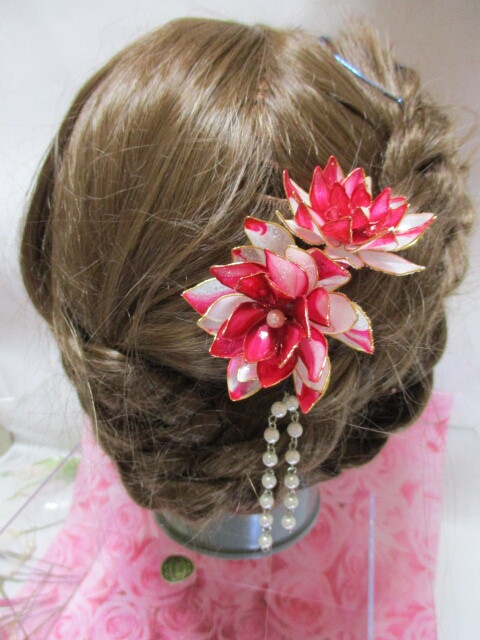 赤 パール 新品 未使用 髪飾り ヘアーアクセサリー ハンドメイド ディップフラワー