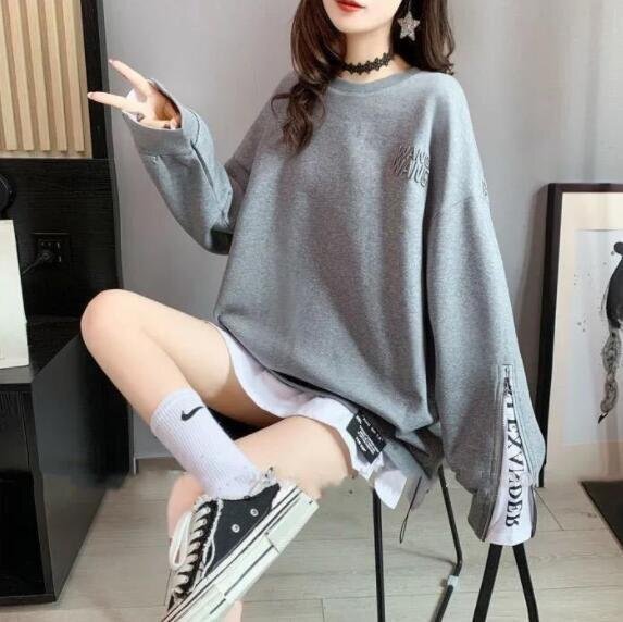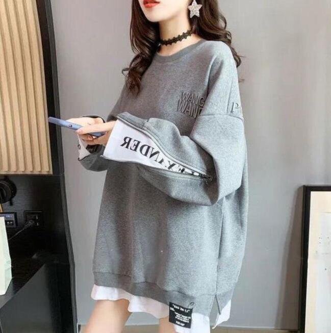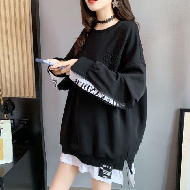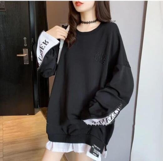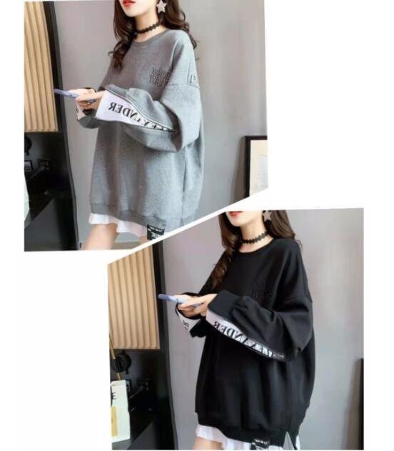 LRM2286★新作春トレーナー トップス 体型カバー 重ね着風 刺 大きいサイズ カジュアル 春秋 レディース ゆったり(2色M-2XL)