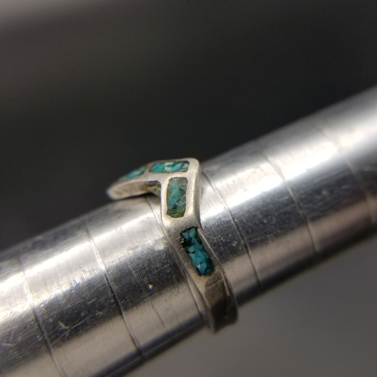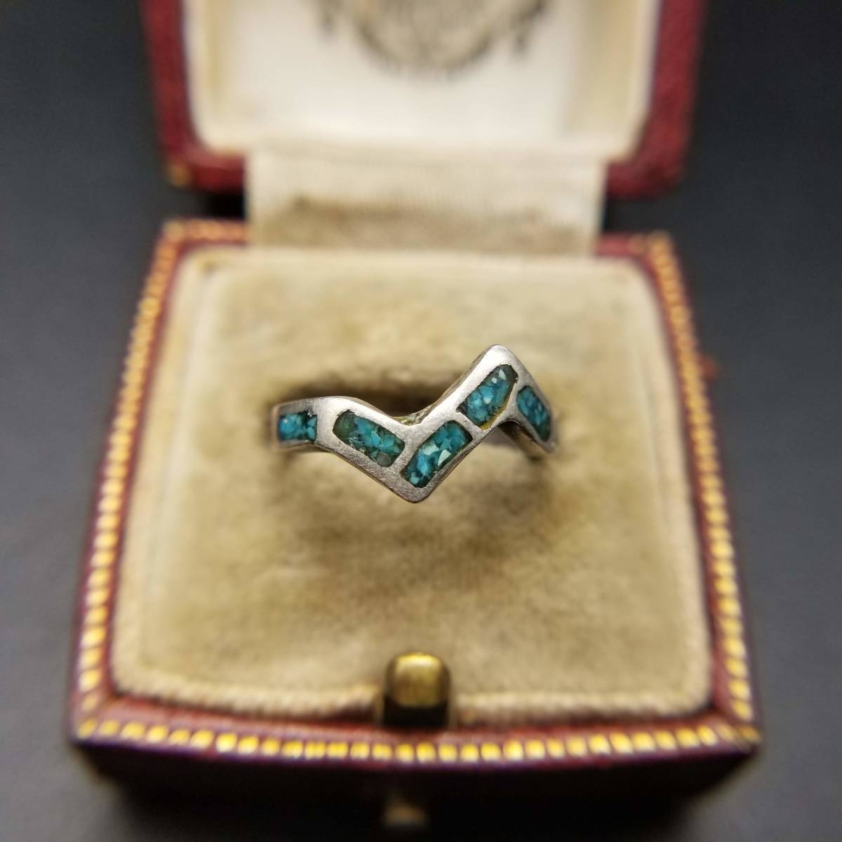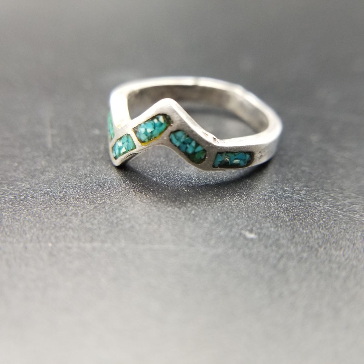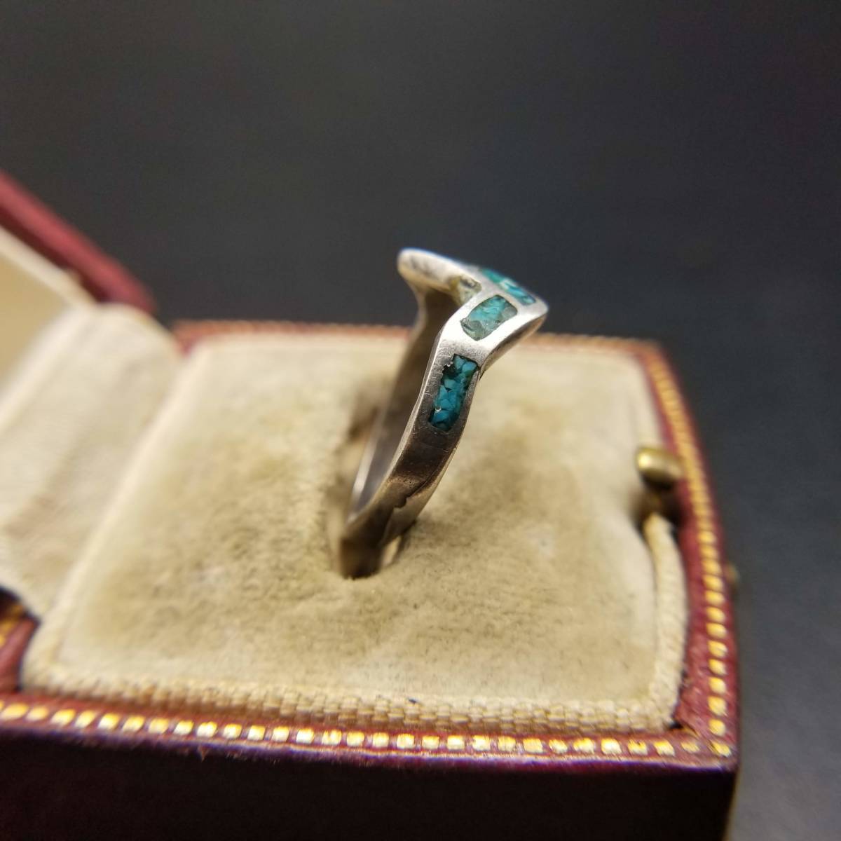 サウスウェスタンジュエリー 米国 ヴィンテージ シルバー リング バンド 銀 指輪 クラッシュターコイズ ピンキー 小さめ Y16-C