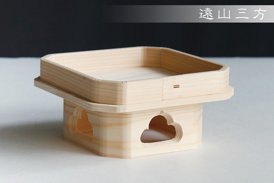 ひのき製 遠山三宝:5寸・高杯:2寸・お皿2寸・榊立3.5寸・瓶子2.5寸・水玉1.8寸・神鏡2寸・かがり火2.5寸・シルク調造花榊1対 | |||