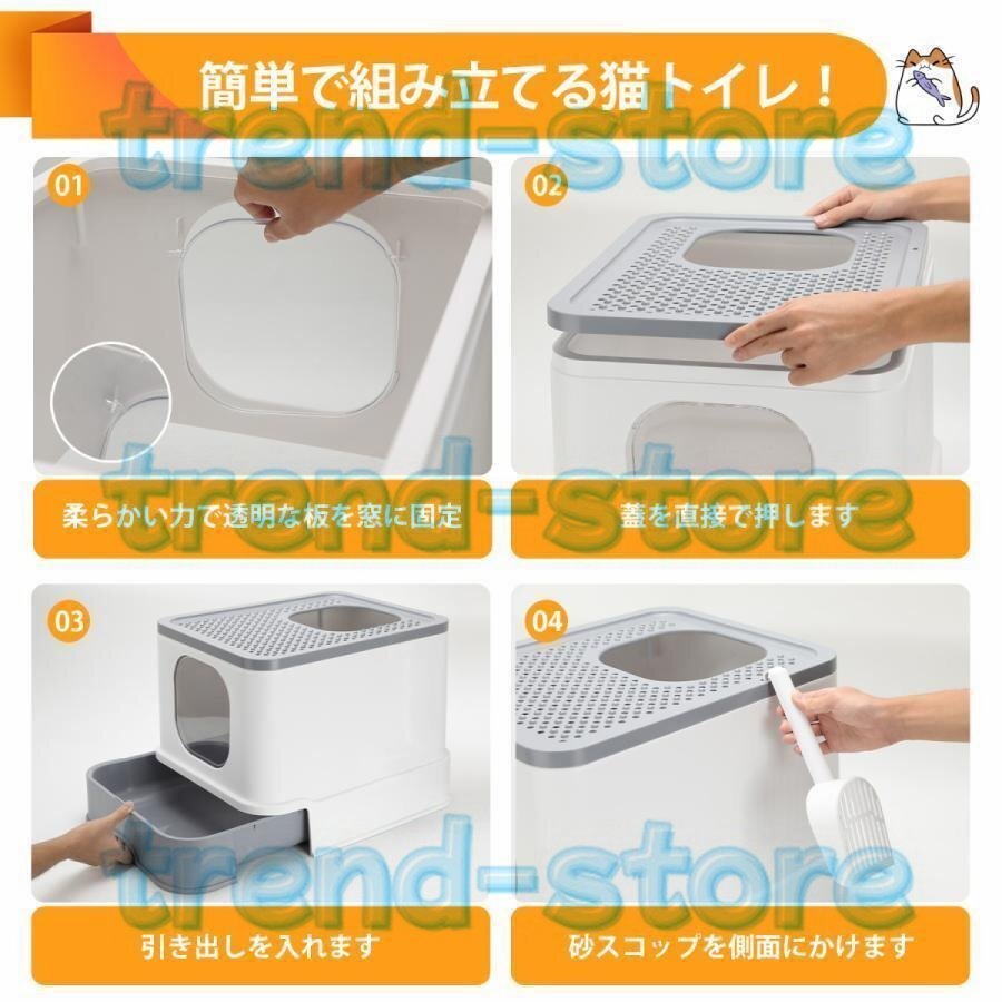 猫トイレ 猫用トイレ本体 大型 ネコトイレ ツードア 大容量 砂の飛び散ら防止 掃除簡単 組み立てしやすい 引き出し式 おしゃれ