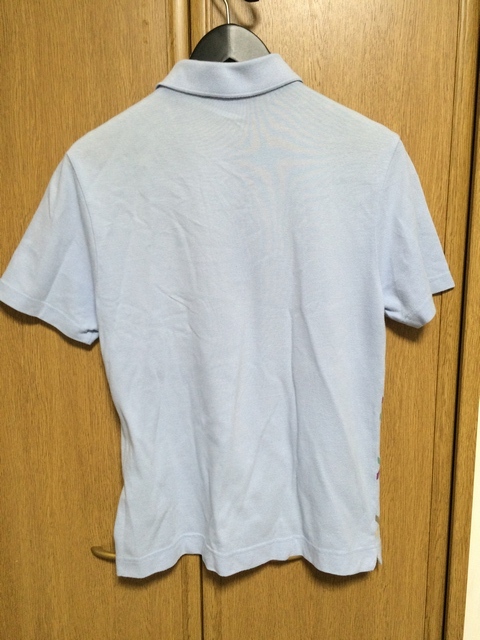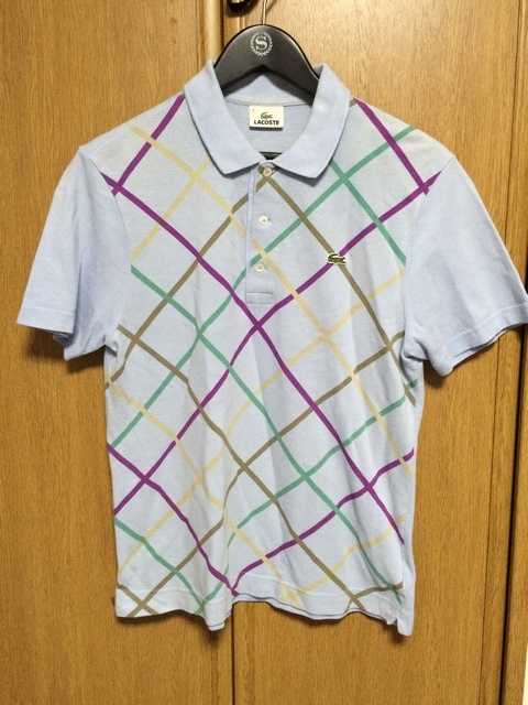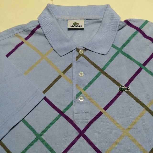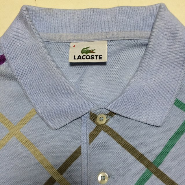 | 商品説明・状態 | 1.LACOSTE の半袖ポロシャツで、スカイブルー単色 鹿の子生地のフロントに、紫色/緑色/茶色/金色でバイアスチェック柄がデザインされています。 2.オーソドックスなサイドスリット付きです。 3.着用回数が少く、襟汚れ、褪色、スレなどはありません。 4.サイズが合って、デザイン、色を気に入られた方いかがですか。 | |
