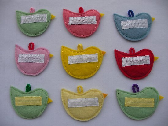 ネームタグ☆持ち物目印☆ネームタグ☆入園入学☆オリジナル☆アップリケ☆小鳥☆可愛い小鳥のネームタグ&うぐいす色&ピンク色ループ