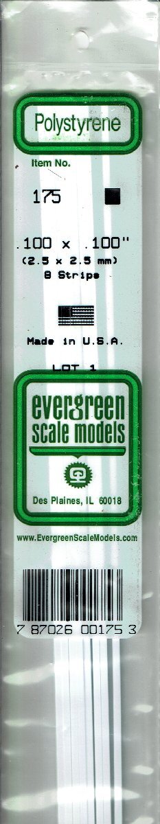 ポリスチレン素材のプラスチック棒です断面は2.5x2.5mmの正方形ですアメリカ製国内メーカー品よりしなやかな材料です#Evergreen#プラストリップ#EVE175