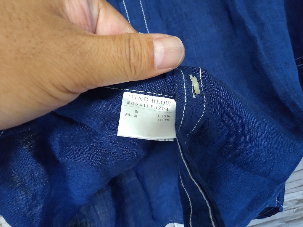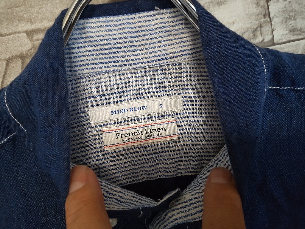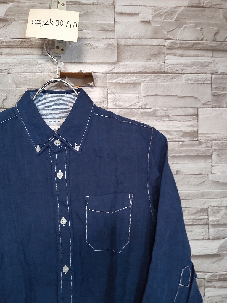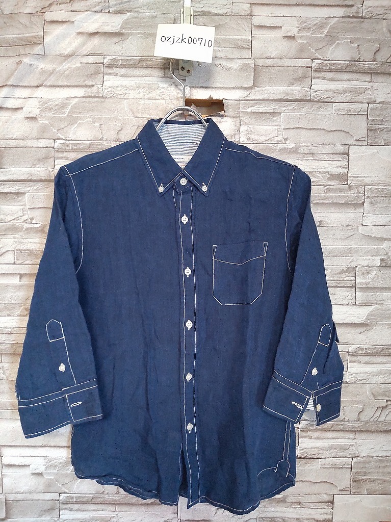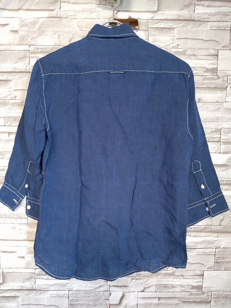 men's H107 MIND BLOW マインドブロウ メンズビギ フランダースリネン 7分丈シャツ S ネイビー