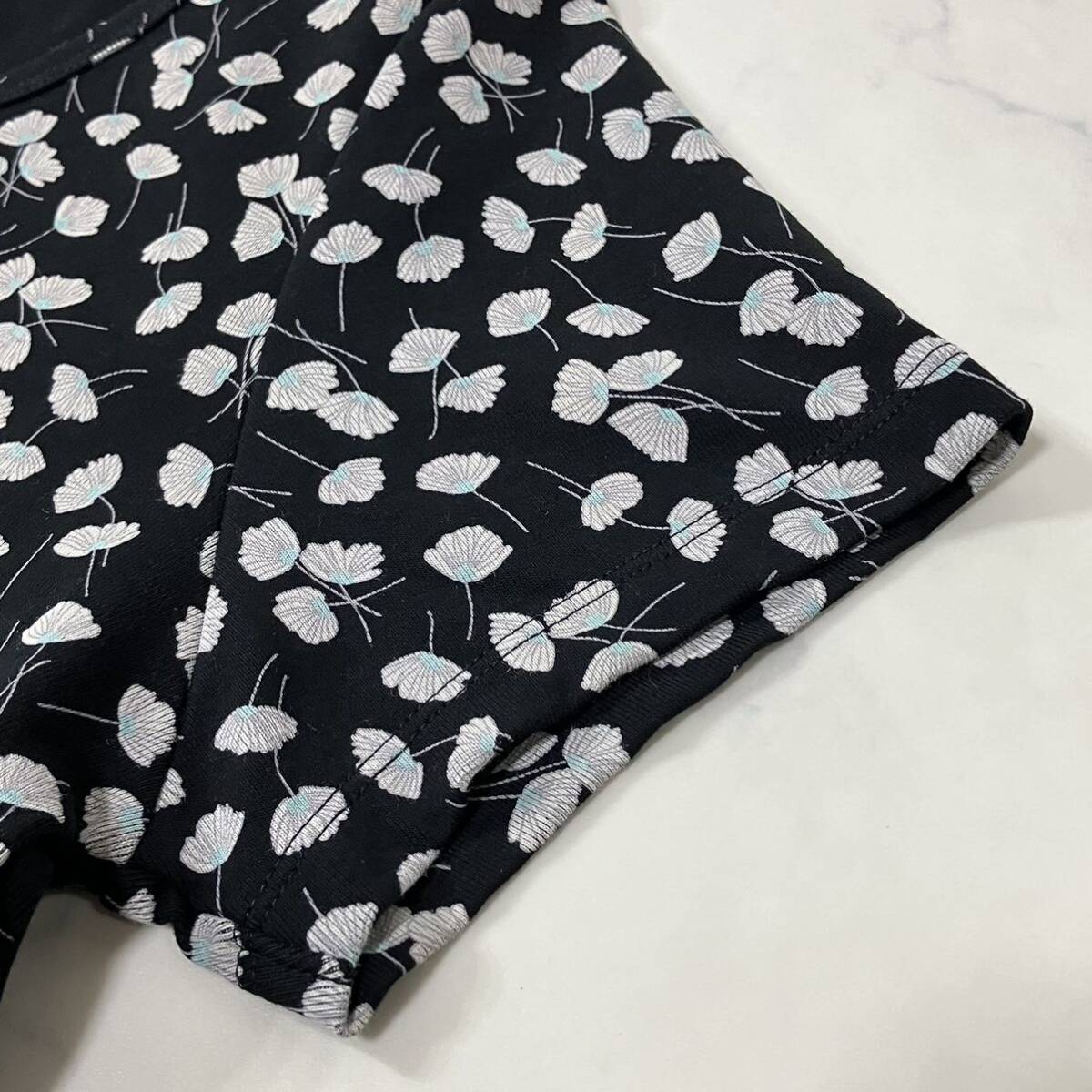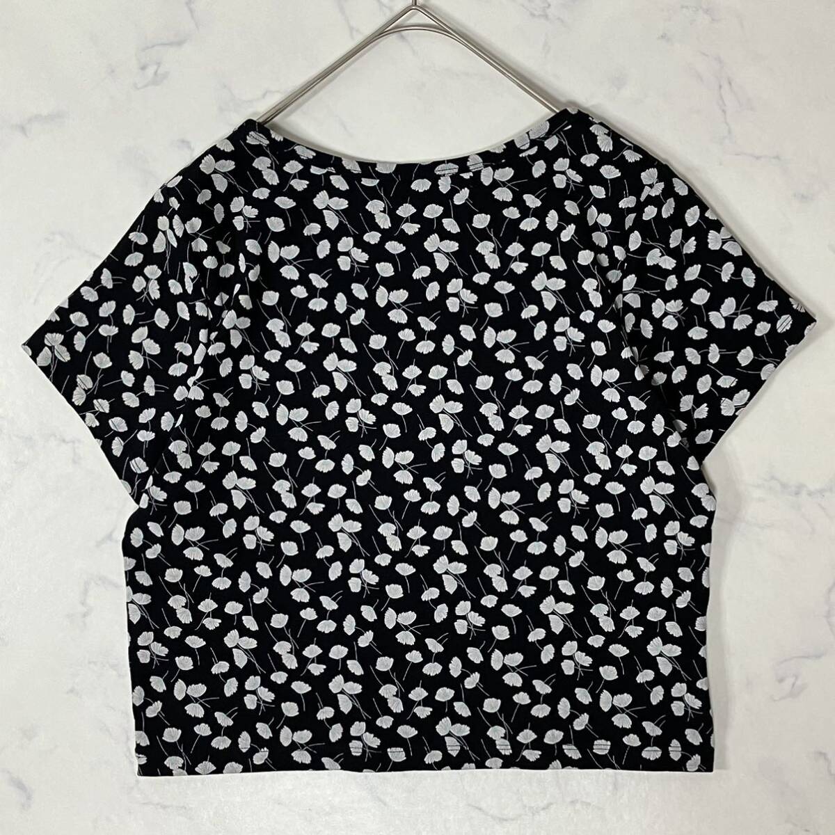 花柄 ラウンドネック ストレッチ ショート丈 半袖 Tシャツ