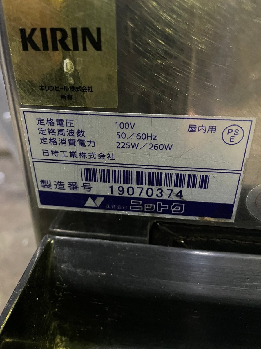 サイズ:W260×D470+40×H565mm 電源:100V 重量:-kg 年式:2019年製 型式:BSE-30 保証:1週間 ●キリンビールのみ対応。本体キャスター付。レバー部分全体140x160x800、台の上置いた場合H610mm