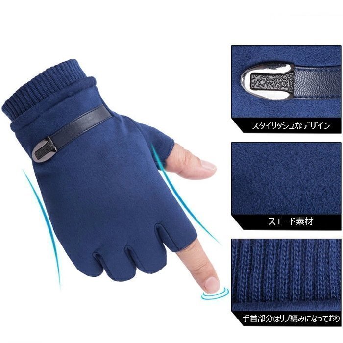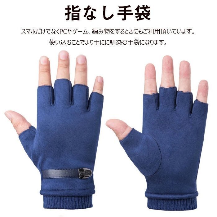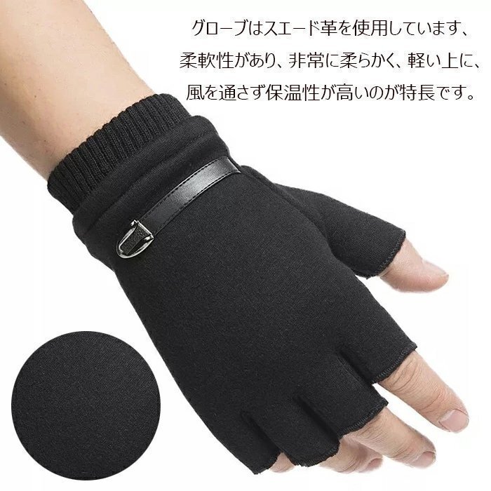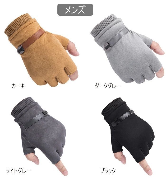 OHJ1135☆秋冬 防寒 暖かい 裏起毛 男女兼用 レディース 手袋 指なし スマホ対応 半指手袋 スエード革 防寒手袋 手袋 ハーフフィンガー グ