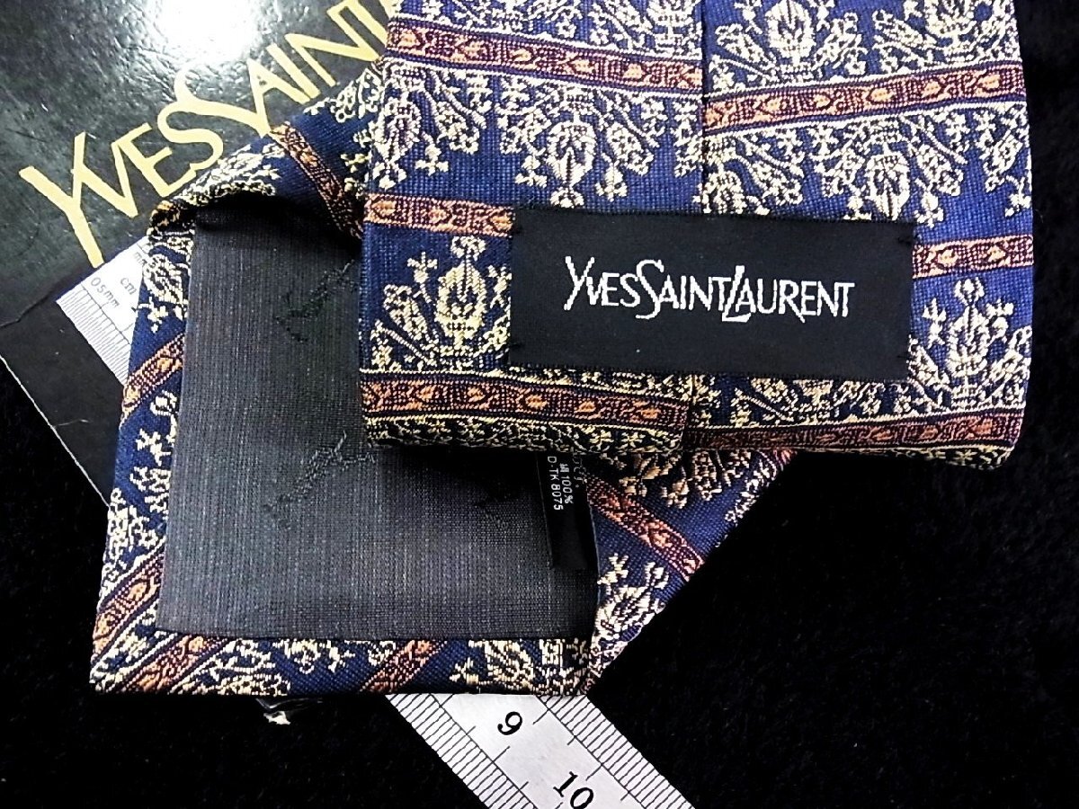 ♪今週の特売980円~♪2829♪良品【YSL】サンローラン【花 葉っぱ 装飾 柄】ネクタイ♪