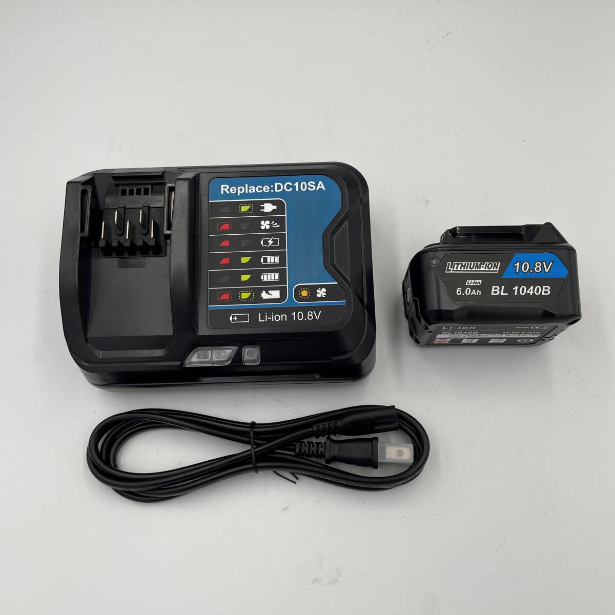 (A) マキタ makita 互換 DC10SA + BL1040B 6.0Ah (1個+1台) 充電器 + バッテリー セット BL1040 BL1040B BL1060 DC10WD 等対応