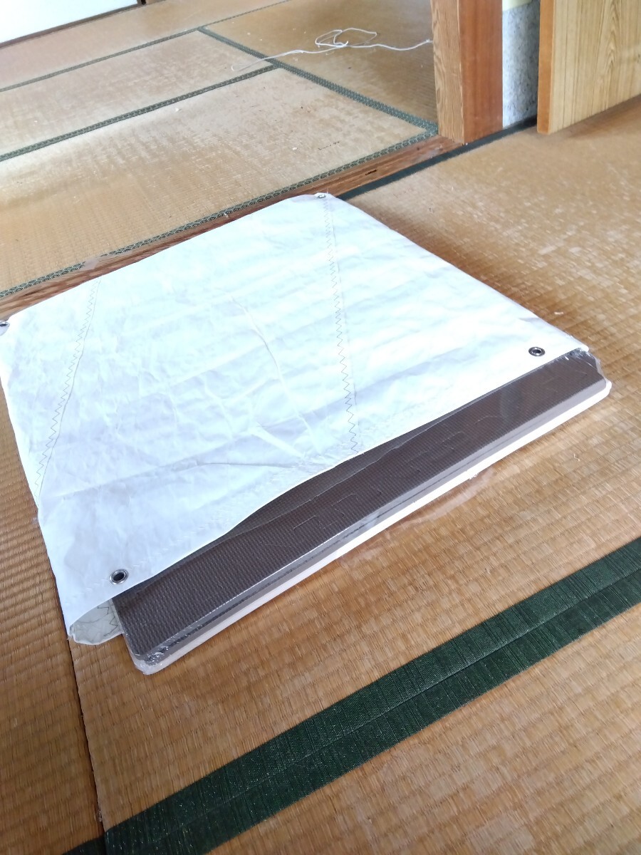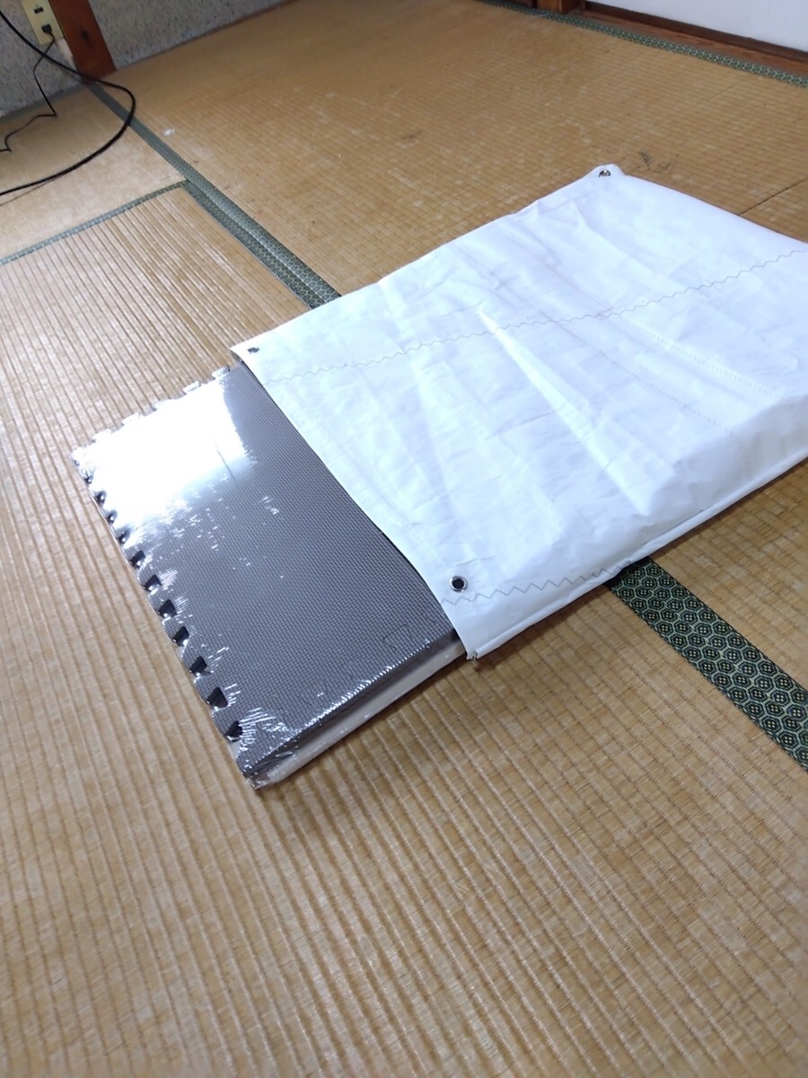 カバーはヨットのUSEDセイルから製作、擦れに強いです、またコクピットクッションとしても使えます、またジョイントマット自体、多少の浮力があります、間違えて海に落としても回収出来ます、