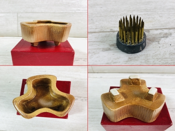 ▼商品状態 サイズ(約)※素人採寸の為誤差があると思いますがご容赦ください。 写真左側 高さ5.5㎝ 写真右側 高さ4.5㎝ ミニ 三足花器 剣山付き 2点セット 写真左側美峰の内部に取り切れない汚れがあります。 写真右側は未使用品です。 どちらも専用剣山が付いています。 状態等写真をご参照ください。 ![]() _______________________________________________________________________ | |